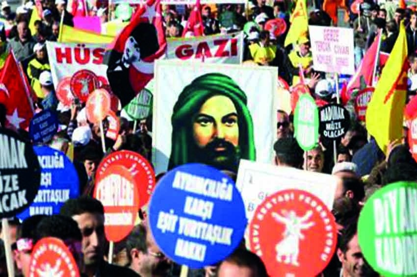 Bu mitolojilerden en yaygını ve özellikle 28 Şubat’ın hemen öncesi ve sonrasında en revaç bulanı şöyledir; Aleviler Türkiye Cumhuriyeti’nin temel ilkelerinden biri olan laikliğin en yılmaz bekçileridir ve bu ülke onlar için -özellikle onlar için- neredeyse tüm değişmez ülkelerden daha önemlidir. Laiklik onlar için ‘yaşamsal’ bir önem arzetmektedir. Bu laikliğe şöyle ya da böyle eleştirileri varsa bunu ‘az’ buldukları içindir. Bu eleştiri konuları da ileride bir tarihte ‘uygun görülen’ bir zamanda ele alınıp giderilir. Ama önce bertaraf edilmesi gereken bir tehlike vardır ve bu tehlikenin bertaraf edilmesi konusunda da ‘Alevi kardeşlerimiz’ ‘biz’le hemfikirdirler. Resmî hafıza tekrar fakat bu kez başka bir yönde harekete geçirilir. Muaviye de ‘Kutsal Kur’an yapraklarını’ mızrakların ucuna geçirerek Hazreti Ali’ye karşı ‘Yüce dinimizi’ kullanmamış, sömürmemiş midir? Nevzat Tandoğan’ı hatırlatırcasına bazı devlet büyüklerimiz Alevilere Aleviliğin ne olduğunu anlatmaya, Alevilik böyle algılanırsa hiçbir sorun kalmayacağını, biraz zor da olsa kendileri için bütçeler geçirileceğini söylemeye başlarlar. Bu arada şimdilerde demokrasinin ‘ne mübrem bir ihtiyaç’ olduğunu aniden keşfeden bazı İslâmcı yazarlarımız da bu resmî hafızaya katkılarını bol bol sunmaktadırlar. Sivas’ta koca koca devlet kolluk kuvvetlerinin önünde yakın tarihimizin en vahşi katliamı gerçekleştirilir, İslâmcı basın ‘provokatör Aziz’den bahseder. İstanbul’da Gazi Mahallesi Olayları yaşanır, Alevi tepki olağanüstü bir sağduyu ile Sünni kesimleri ya da İslâmcıları hedef almaz, ama Ahmet Taşgetiren, köşe yazısında Alevilerin İslâmcı gettoları ‘kuşatacak’ şekilde yerleştiklerini yazar.
